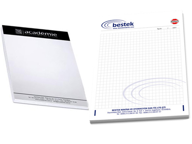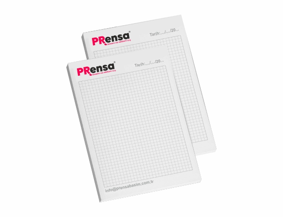 14x20cm, 50 yapraklı, tek renk baskılı, 1. hamur kağıttan üretilir, Üstten tutkallı A5 ebat.
