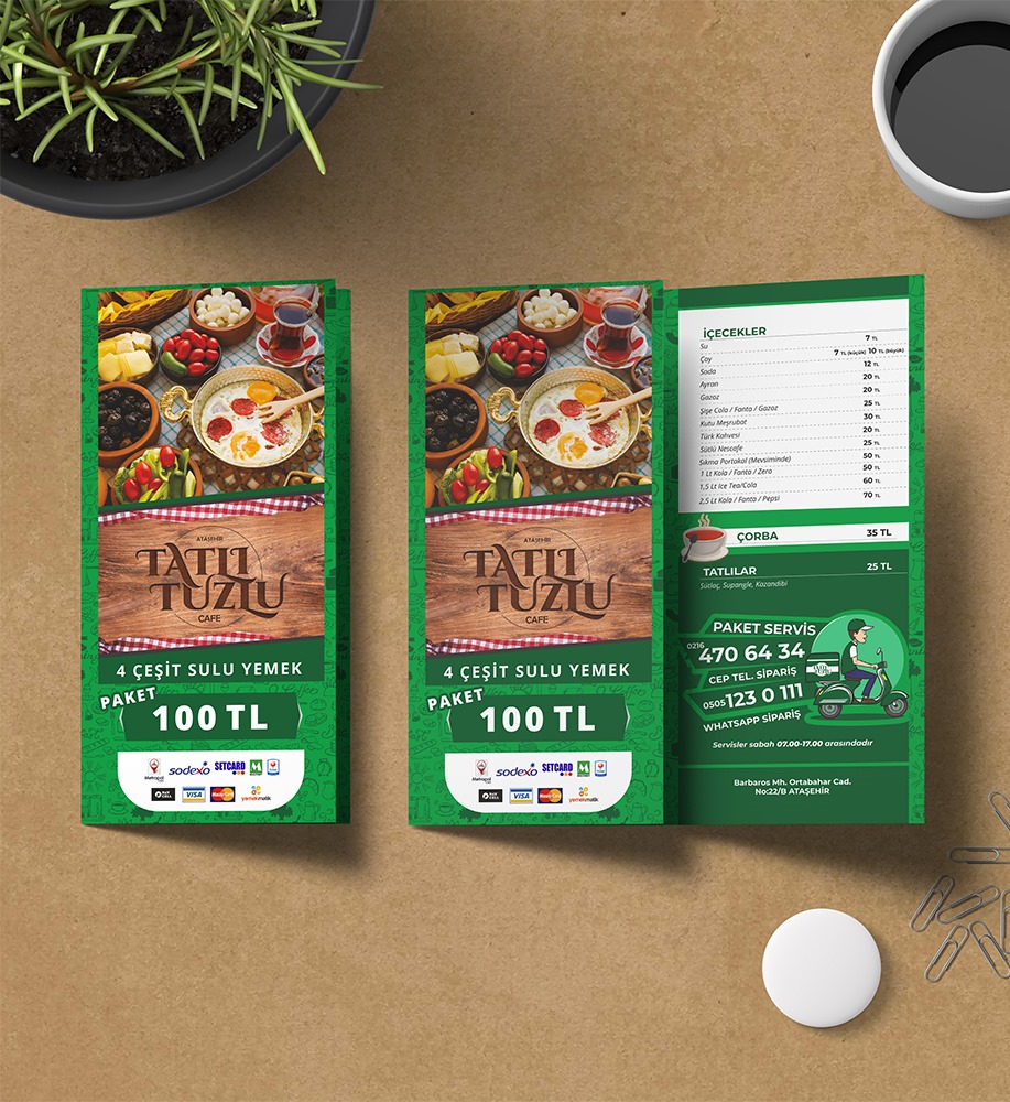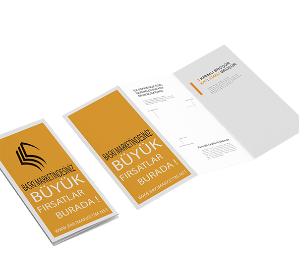 Ürün Açıklaması: A4 ebatının yatay hali ile kırım işlemi uygulanarak,3'e katlanmasıyla oluşan kapsamlı broşürdür. 115gr. kuşe, çift yön basılır, çift kırımlı ve Z broşür diye de bilinir. Hem broşür hem de fuarlarda detay veren kitapçık görevini de görmektedir.
